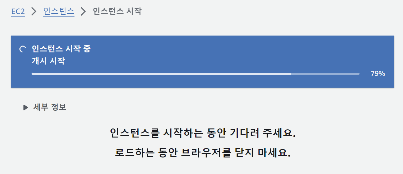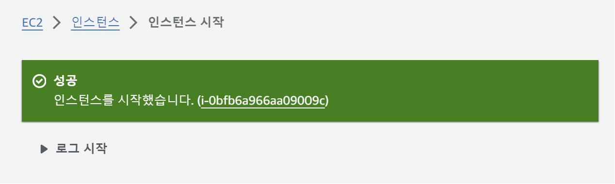 인스턴스 시작을 클릭하면 인스턴스를 생성하기 시작하고 곧 인스턴스 생성이 완료된다.