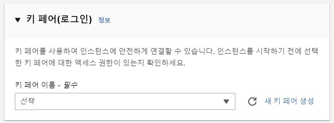 생성해둔 키페어가 없다면 새 키 페어 생성을 클릭한다.