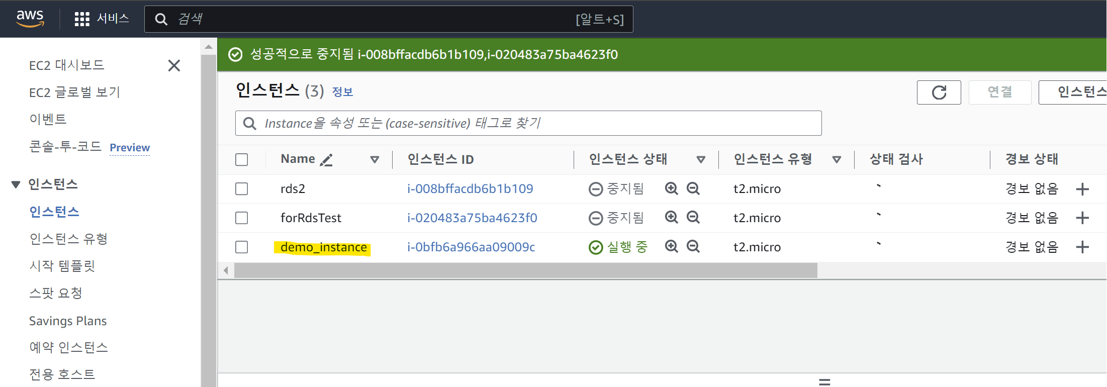 인스턴스 탭에서 새로 생성된 인스턴스가 추가된 것을 확인할 수 있다.