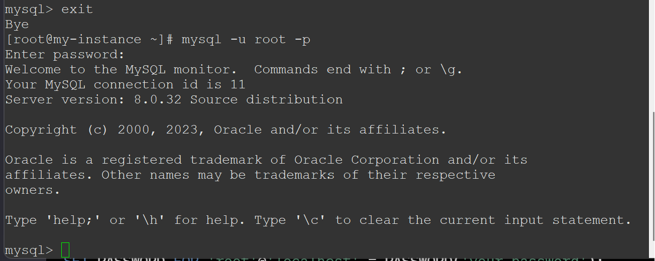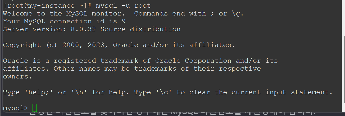 명령어 입력부분이 mysql> 로 바뀐 것을 볼 수 있다. 성공적으로 연결이 되었다.