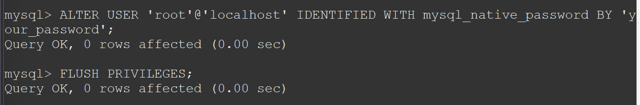 ALTER USER 'root'@'localhost' IDENTIFIED WITH mysql_native_password BY 'your_password';